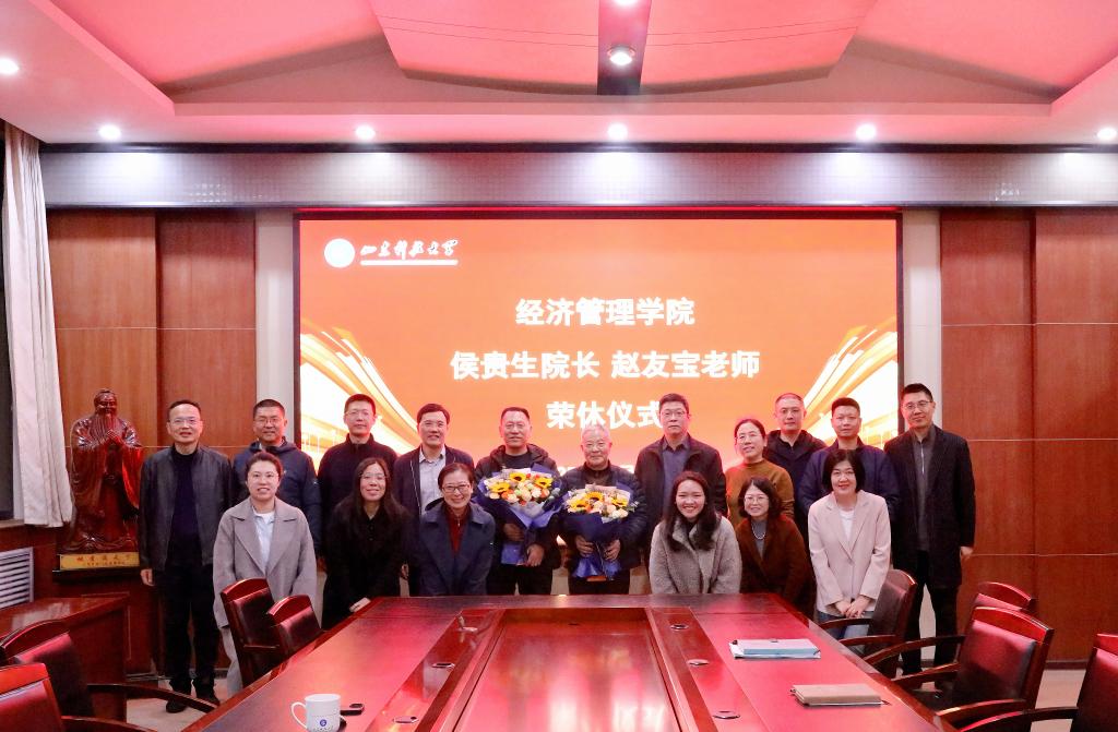 11月12日,必赢776net在学院楼309会议室举行侯贵生院长、赵友宝教授荣休仪式,必赢776net领导班子成员及教师代表参加仪式。