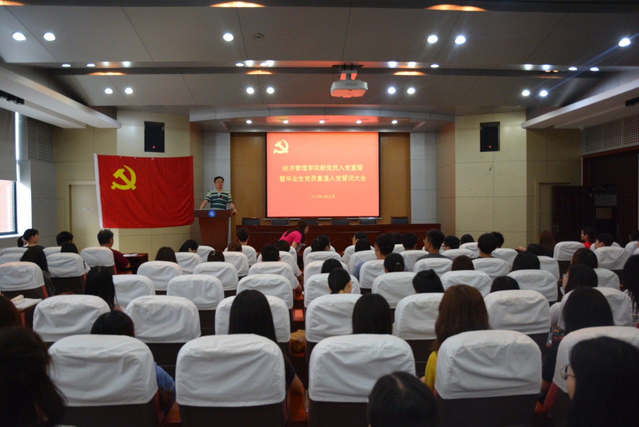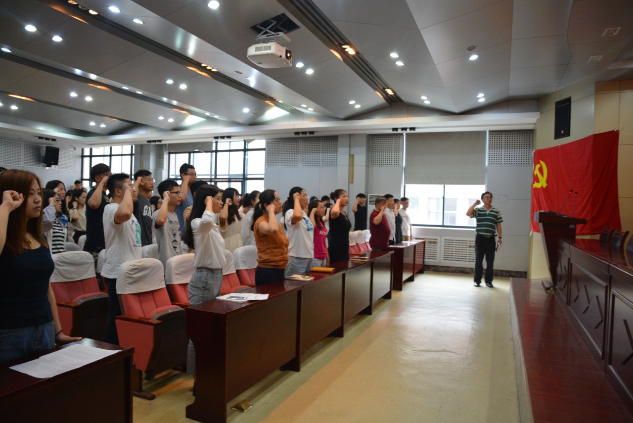 6月26日下午,必赢776net在J6-433举行新党员入党宣誓暨毕业生党员重温入党誓词大会,参加会议的有院党委书记杨佑灵、团委书记陈永磊、全体辅导员及全体学生党员。