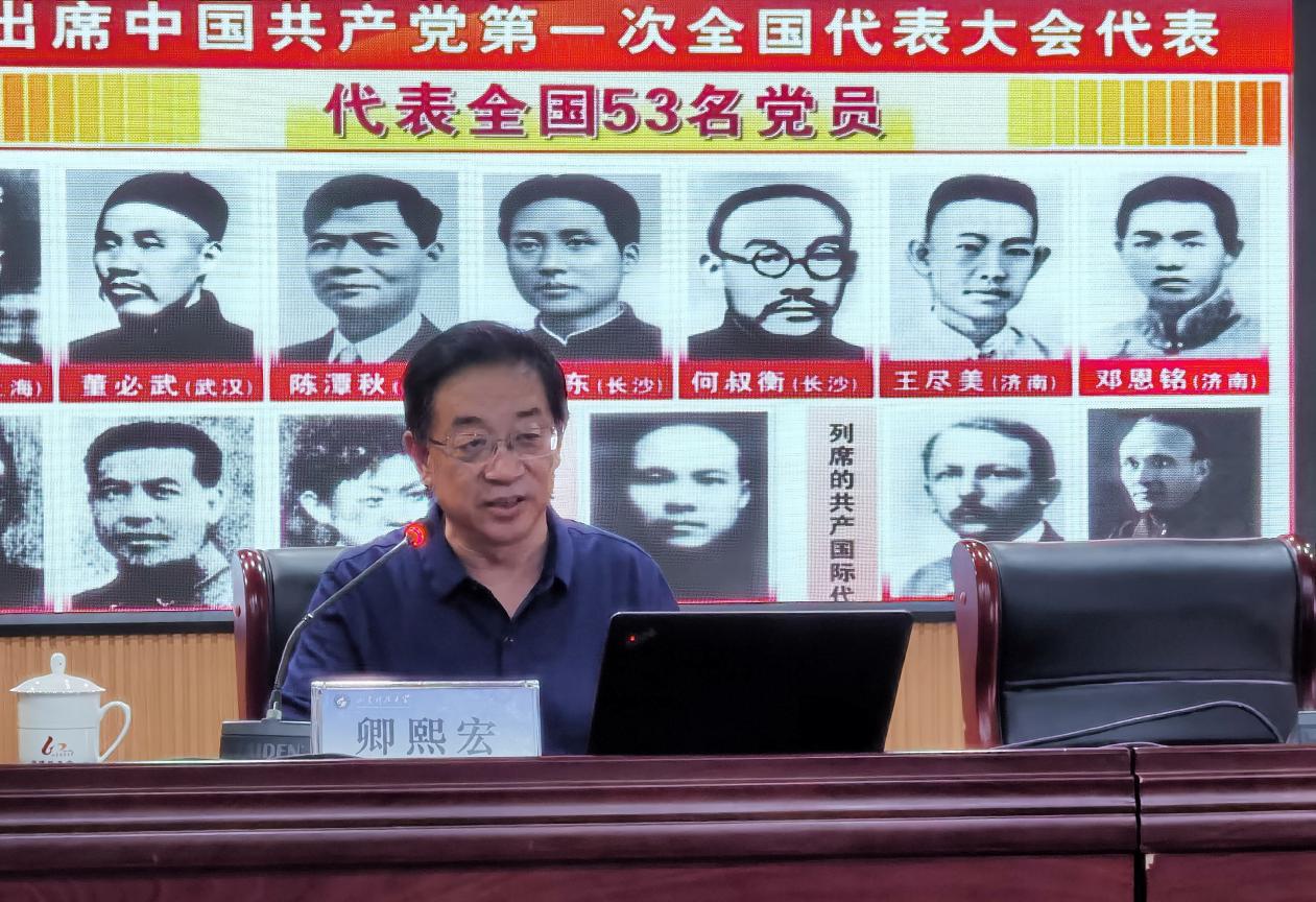 卿熙宏以《从初心使命出发历史选择中国共产党的历史必然性》为题阐述了中国共产党百年奋斗的光辉历程,总结了党在革命、建设、改革以及新时代进行的艰苦奋斗和取得的巨大成就他用大量真实生动的历史事件、故事讲述了中国共产党领导人民群众从一个胜利走向另一个胜利,以及党和人民群众密不可分、荣辱与共的鱼水深情。宣讲中,卿熙宏结合当前国际形势充分阐释了中国共产党观大局谋大事,引领历史发展大势的中流砥柱作用;并对新中国成立以来我国教育事业取得的成就进行了梳理,希望广大教育工作者要勇担为党育人、为国育才的使命责任。