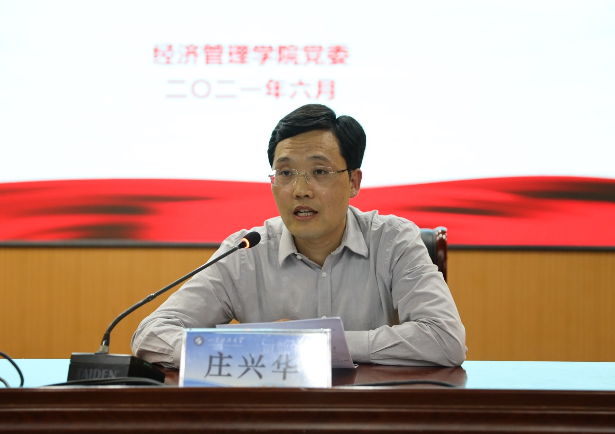 为持续推进党史学习教育,进一步坚定信仰信念,6月1日,必赢776net党委邀请学校党史学习教育宣讲团成员、审计处处长卿熙宏来院作报告,学院领导班子及全体教职工党员参加宣讲会,会议由院党委书记庄兴华主持。