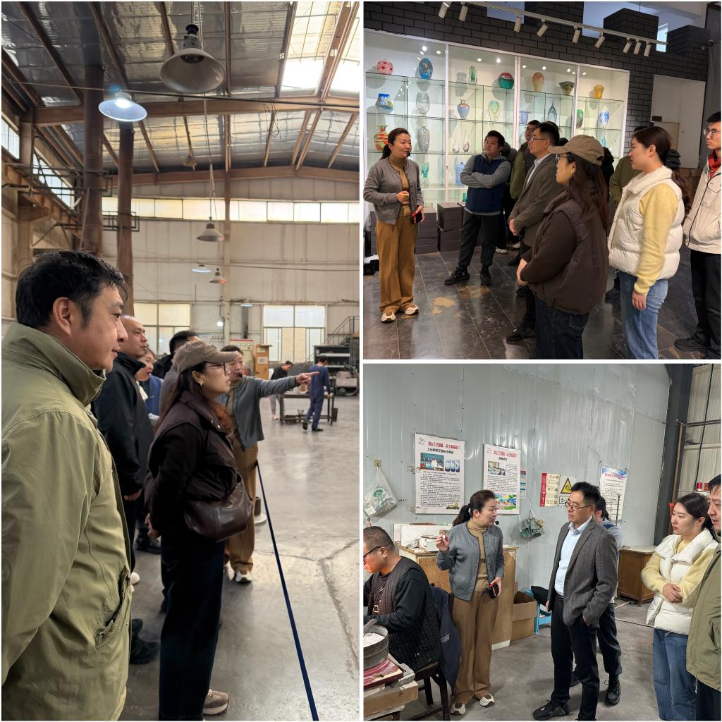 在西冶工坊,党员们近距离感受“琉璃之乡”的传统技艺与产业传承,观看了熔料、拉丝、吹塑、雕刻等琉璃制作技艺,了解工坊如何在继承传统工艺的基础上不断创新研发,推动琉璃文化走向更广阔的舞台。西冶工坊不仅承担国宴、上合组织峰会等重大活动的琉璃制作任务,更被列为山东省重要的文化体验与工匠精神教育基地,多位省市领导曾到访调研。工坊在非遗保护、文化输出、产业升级方面的探索,对党员们具有深刻的教育意义,让大家切实体会到“坚持、创新、匠心”的力量。