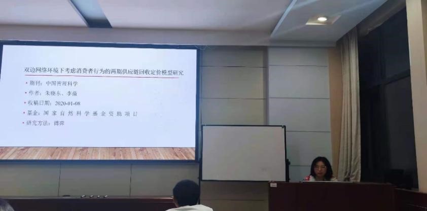 第48场:李晓菲同学以《双边网络环境下考虑消费者行为的两期供应链回收定价模型》研究为例,分享了双边平台上电子废弃物回收等相关研究内容与成果。李晓菲同学以该论文为例双边网络平台下考虑消费者行为的两期供应链回收定价问题,研究表明,交叉网络外部性强度与平台向两边征收的价格、各主体利润和总体利润存在相关关系。第三方回收平台通过补贴消费者可有效增加回收效用,提高了回收率与消费者回收意识。实施收益共享契约的互利性使各主体积极主动实施契约,提高了各方与总体利润。
