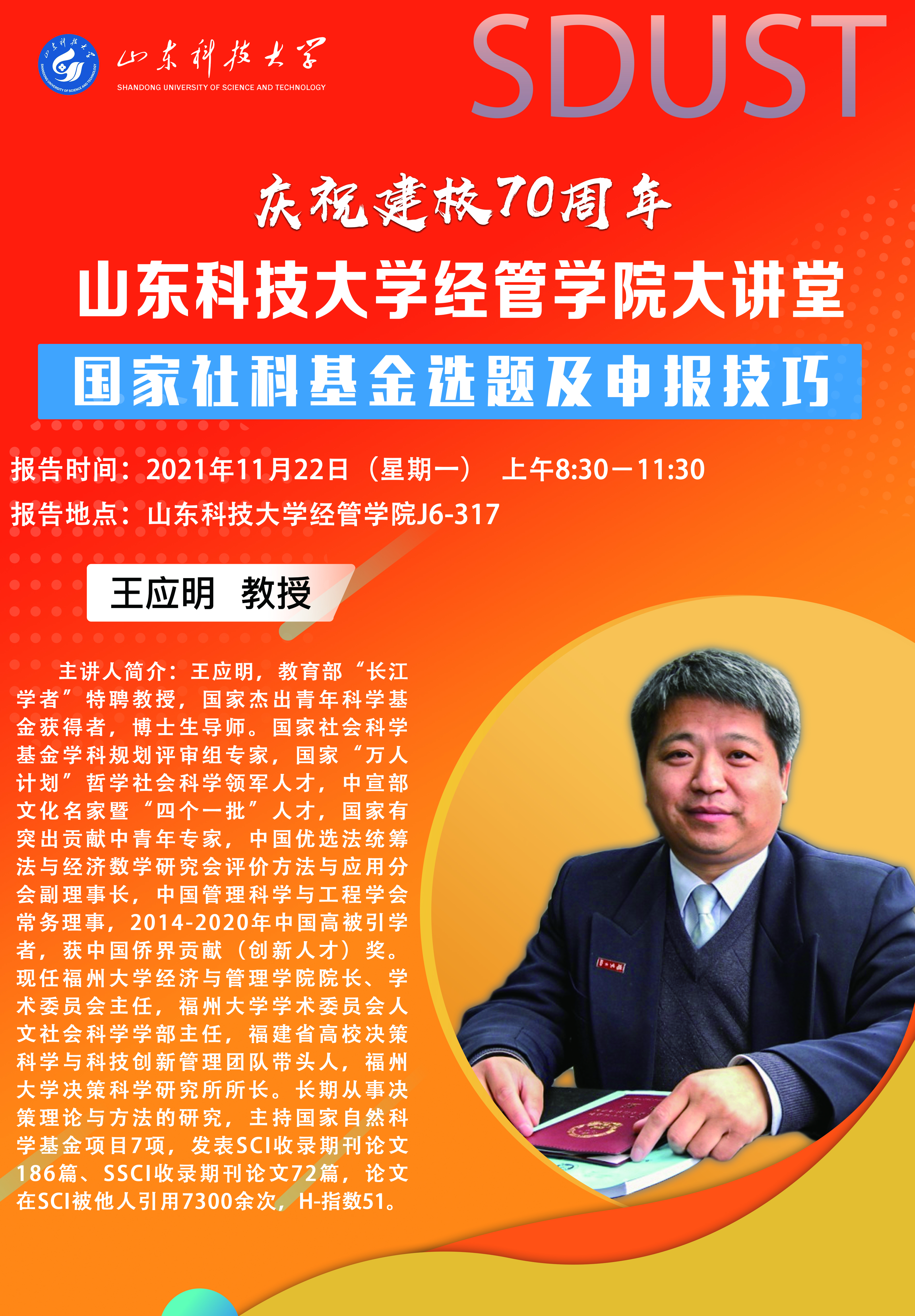 喜迎建校70周年华诞丨山东科技大学必赢776net大讲堂