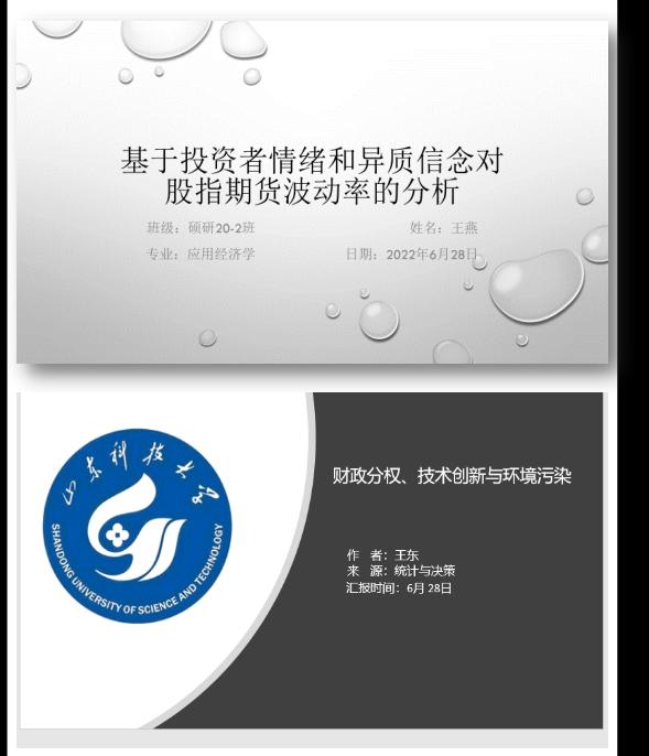 第一场:王燕同学以刘金娥、陈国进2021年发表在《投资研究》上的文章《基于投资者情绪和异质信念对股指期货波动率的分析》进行了讲解。论文主要是构建了投资者情绪、异质信念和股指期货波动率的衡量指标,研究了投资者情绪和异质信念对股指期货波动率的影响,并比较了投资者情绪和异质信念在不同扩展模型中的样本内预测能力。结果表明,异质信念和投资者情绪显著提高了沪深300股指期货波动率的样本内预测能力。此外,投资者情绪和异质信念对沪深300股指期货的收益率及其波动率具有显著的正向溢出效应。汇报完毕后,马晓泓等博士对HAR-RV模型的扩展过程、模型之间的联系展开了讨论。