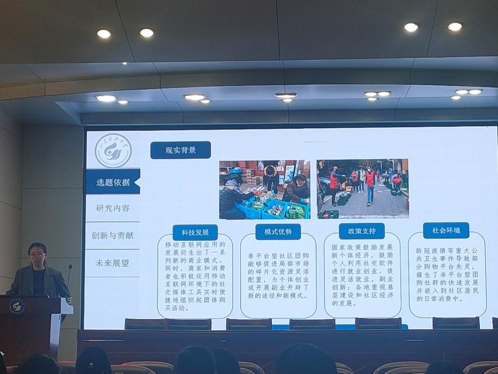 2019级管理科学与工程专业博士研究生傅晓晖作了题为“非平台型团购社群竟争优势的影响因素、形成路径与策略选择研究”的学术报告,报告围绕她的博士毕业论文展开。报告中,傅晓晖指出非平台型团购社群可以极大限度地集中社会中的零散资源,为个体开拓出新的就业创业路径,起到了保障民生的作用,推动社会经济发展。然而,非平台型团购社群也面临着多方的竞争压力,阻碍了其持续发展,而竞争优势则是非平台型团购社群实现持续发展的重要所在。她讲解了如何以及为什么运用扎根理论识别出驱动非平台型团购社群竞争优势的影响因素。在识别出关键影响因素后,又运用了结构方程模型和模糊集定性比较分析法进行了直接作用和协同作用的检验,探究出了非平型团购社群竞争优势的形成路径,继而再运用博弈论与仿真分析选择出最优的策略。最后,她与各位研究生分享了“扎根+实证”“扎根+组态”“实证+组态”等研究范式,供各位研究生思考是否可以运用到今后的研究中。
