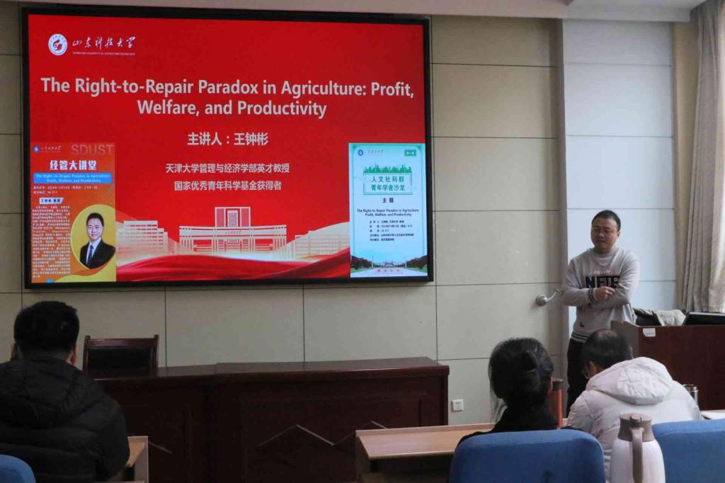 12 月 13 日,必赢776net于学院楼三楼会议室举办经管大讲堂与人文社科群青年学者沙龙活动,特邀天津大学管理与经济学部王钟彬教授担任主讲嘉宾,围绕“农业中的“修理权”悖论:利润、福利与生产力”为学院师生作学术报告,吸引了学院多名青年教师以及博士、硕士研究生积极参与。