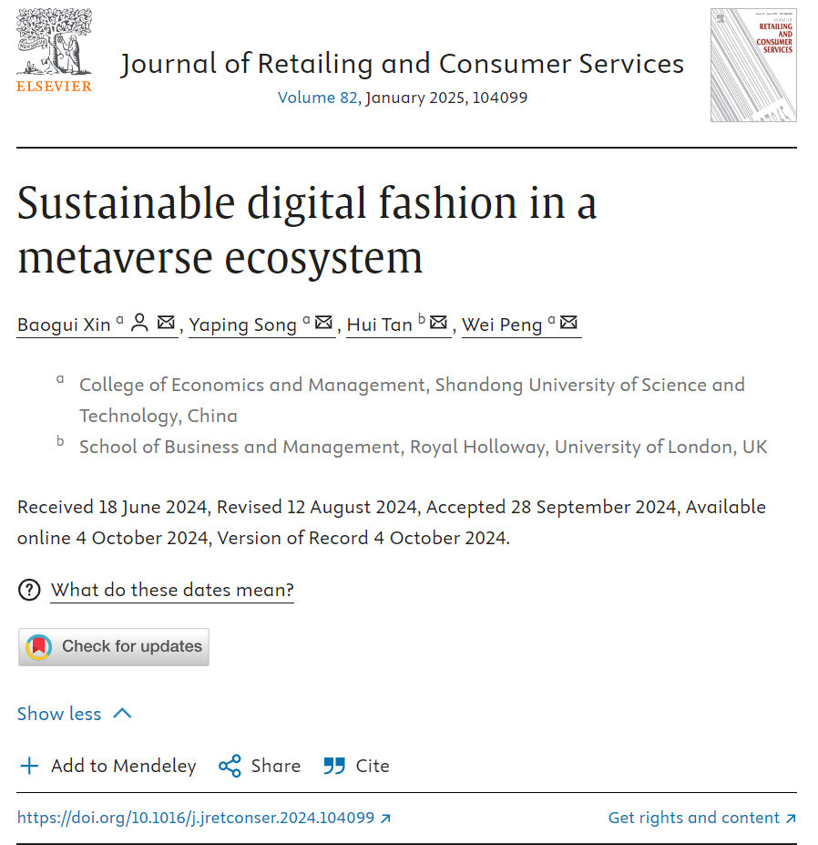 摘要:该研究探讨了数字时尚在元宇宙生态系统中的可持续性潜力。时尚行业是全球污染最严重的行业之一,而元宇宙的出现为品牌提供了转向数字时尚的机会,从而实现更环保的选择。文章运用博弈论构建了一个理论模型,分析了品牌制造商与数字时尚平台之间的战略动态,探讨了在信息不对称的环境下,品牌制造商如何通过平台的技术投资水平来判断其技术减排能力。模型揭示了信息不确定性如何影响定价、投资和绩效结果。然而,信息不对称使得战略决策变得复杂,具备先进能力的平台通过有效管理成本获得竞争优势,而制造商则可能以牺牲平台的利润为代价获利。研究为可持续时尚和数字生态系统的相关文献作出了重要贡献,从行业可持续性的角度来看,元宇宙生态中的所有利益相关者都需要采取负责任的行动,包括谨慎选择技术、清晰沟通能力、成本管理和战略合作。通过优化技术投资和战略动态,平台可以降低能耗,提升数字时尚产品的环境效益,从而推动数字时尚的可持续发展。