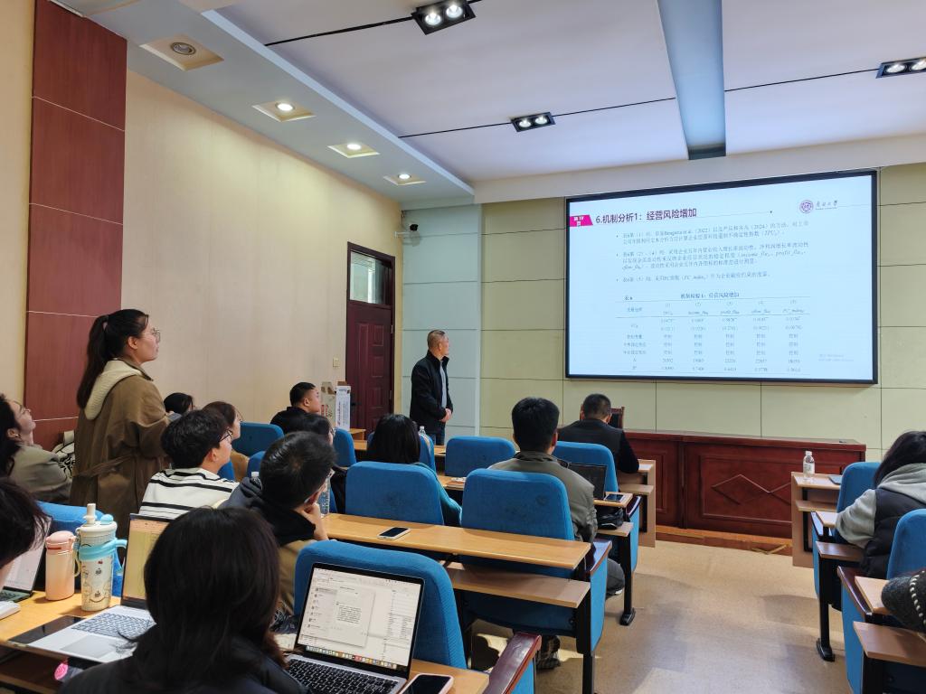 互动环节,师生就“实证研究数据处理中的参数方向”“中外期刊对于数据时效性的要求”“研究生学习和升学的策略与方向”等问题踊跃提问,李磊教授予以耐心解答。