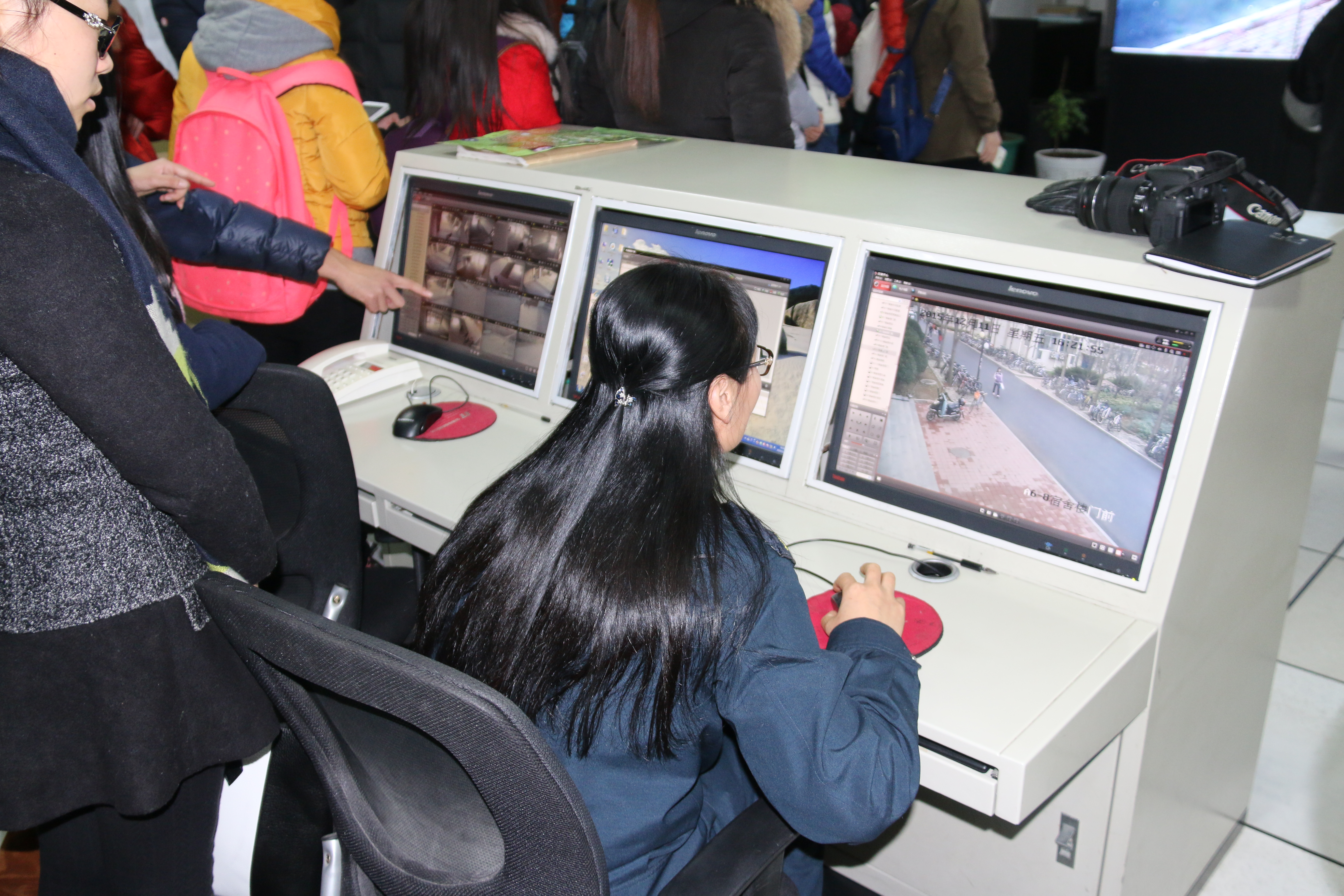 进入校园监控室,校园各个角落的图像便映入眼帘。学生代表们围在监视屏幕前方,仔细观看屏幕里校园各处的情景。校保卫处治安科科长张大鹏老师为到场的参观者讲解了校园监控工作。他讲到,我校的监控覆盖率已达70%,且全部升级为高清摄像头,张老师提醒同学们,监控系统只能起到辅助作用,更为重要的是宣传安全知识和提高自我防范意识。此次参观活动使大家在深入了解校园监控工作的同时深刻地感受到了学校对全校师生安全的重视,并提高了同学们的安全防范意识。 (必赢776net学生会记者团:王晓阳陆志伟;摄影:陆志伟)