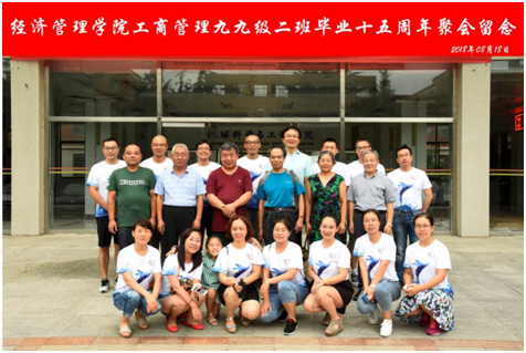 8月18日下午,工商管理专业1999-2班同学在学院楼309会议室举行毕业十五周年座谈会。学院党委书记杨佑灵出席座谈会,任课教师代表陈玉和、王新华、张月玲、赵友宝及时任辅导员窦存增、陈永磊一同参加了座谈会。