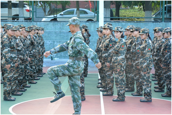 对这些很少接受严格训练的学生而言,军训的种种要求显得严苛,但同学们都一丝不苟地认真执行,全场氛围严肃而又安静。今天的训练内容主要是站军姿、左右后转、原地踏步走、左右摆臂、戴军帽,每一项动作教官们都亲自以动作示范,感染学生的是一种军人的风姿,一种军人的气魄,更是一种军魂的感召。