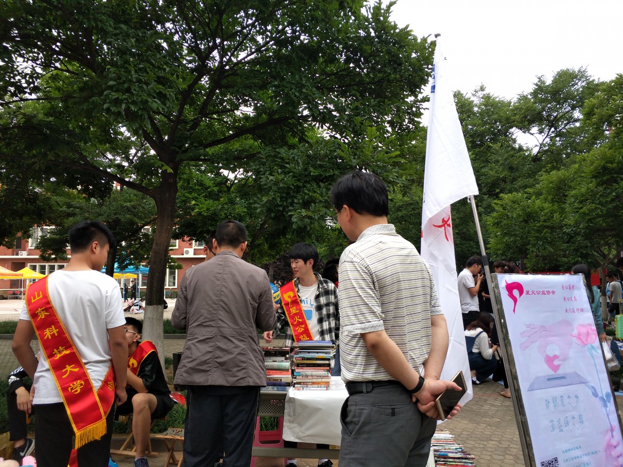 二手交易市场活动秉承的是公平、自愿、诚信的原则。各个学院的毕业生在自己的售卖区域低价处理考研参考书、学习资料、旧衣服、二手电子产品、体育用品、收纳盒等等。据统计,本次二手交易市场共有近400个流动摊位,吸引了近千名学生参加。此外,校公益组织萤火公益的“爱心义卖”活动也在本次活动的现场进行。活动现场,虽然天色灰暗,但是毫不影响大家对二手交易的激情。一大早,本次交易活动的“卖家”大四毕业生们陆陆续续地推着行李箱装着将要出售的物品来到繁星广场,他们在平整的地上铺好塑料布,然后蹲下身整齐的摆出商品,等待顾客的“光临”。不一会儿,山科的二手交易市场开始热闹了起来,“买家”们都在精心挑选着自己喜欢的物品,时不时地询问一下价格,找寻“讨价还价”的余地。现场人头攒动,来往的“买家”络绎不绝。