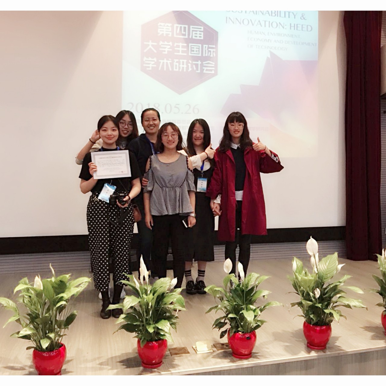 2018年5月25日至27日我院学生张琪、田园、孙倩玉、孔力洋、李芃芃、陈欢等六位同学在我校外国语学院学术英语教研室老师带领下,分别前往上海师范大学、南京审计大学参加“第四届大学生国际学术研讨会”。在上海师范大学主会场,我院会计2016级1班张琪(指导教师:唐建敏教授),代表我校进行了题为Data Analysis Based on the Consumption and Management of University Canteens—A Case Study of Shandong University of Science and Technology的主旨发言。本次研讨会全国共推荐5位主旨发言者,由于我校学术英语教研室组织得力,论文数量和质量都过硬,再加上张琪同学出色的论文内容以及全面的综合素质,因此得以有了这次难得的主旨发言机会。张琪同学提交的研究计划也在此次评选当中脱颖而出,获得优秀研究计划奖(全国仅16份研究计划获此奖项)。26日下午各分会场做论文宣读,我院会计学2016级学生田园、孙倩玉及孔力洋分别展示了关于“当今美国减税对中国现在和未来经济发展的影响”及“ 城镇化对农村手工业的影响”的海报。同时,在南京分会场我院财政学2016级学生陈欢、李芃芃进行主旨宣读,参会人员积极提出问题进行探讨,收获颇多。