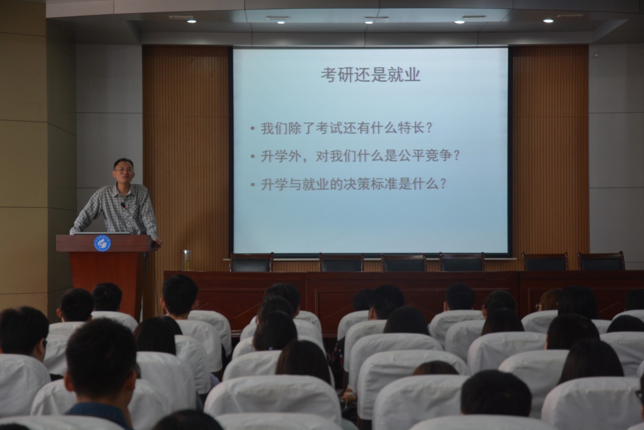 辛院长从考研的指导入手,为学生提供了关于考研方面的建议。他强调考研是继高考之后又一重要考试,一定要认真对待,这样才有利于大家考上理想的学校。随后,他就考研还是工作、考双一流还是一般学校、推免政策、考研现状、考研策略、本校简况几个方面依次进行了讲解和分析。最后,辛院长针对考研方面的问题为大家解惑,还为学生们在学习生活当中的一些问题提出宝贵建议。