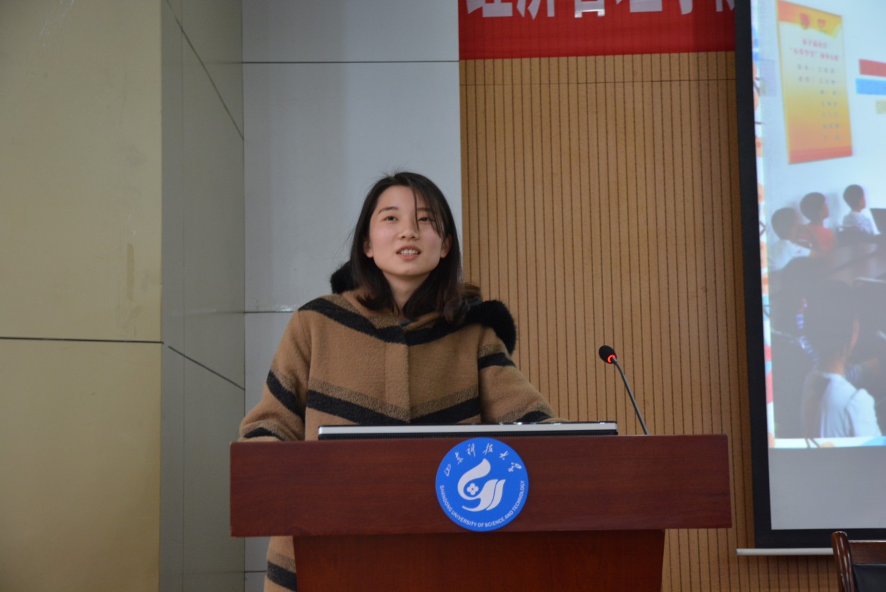 在交流会中,三个团队的代表轮流上台与同学分享了暑假实践的经历,并讲解自己从实践中习得的道理。代表小草学堂团队的王远霞配合PPT向同学们展示多姿多彩、收获颇多的支教生活。心理健康宣传服务队的代刘晓冉从专业的角度,严谨地分析了一次调研活动所需的各项准备。服务队的另一个代表杜庆云给同学们总结并介绍了三下乡活动的感悟。紧接着,来自暖春公益团队的张钰涵向同学们展示了“人格助教,心理关怀”的暖春公益团队。在最后的十五分钟提问时间,同学们积极踊跃地参与提问活动,气氛火热的同时,代表们的回答也解决了广大同学的疑惑,让大家对暑期实践活动有了更深的理解。