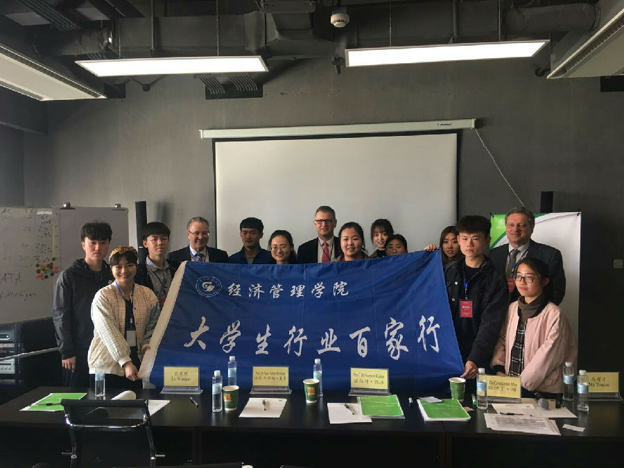 活动期间,安斯巴赫大学诺伯特·凯泽教授介绍了安斯巴赫大学的地理位置及风土人情,并做了“卓越商业”的主题报告,介绍了什么是卓越、欧洲企业质量管理(EFQM)模式的主要内容以及相关的成功案例。康斯坦丁·梅教授做了关于“卓越经营”的主题报告,讲解了如何达成世界级卓越业绩、卓越经营参考模式以及卓越经营的应用。康斯坦丁·梅教授还和同学们进行了KATA教学互动,通过拼图游戏告诉大家,只要不断努力,排除不可抗力因素,最终可以达到自己既定的目标。