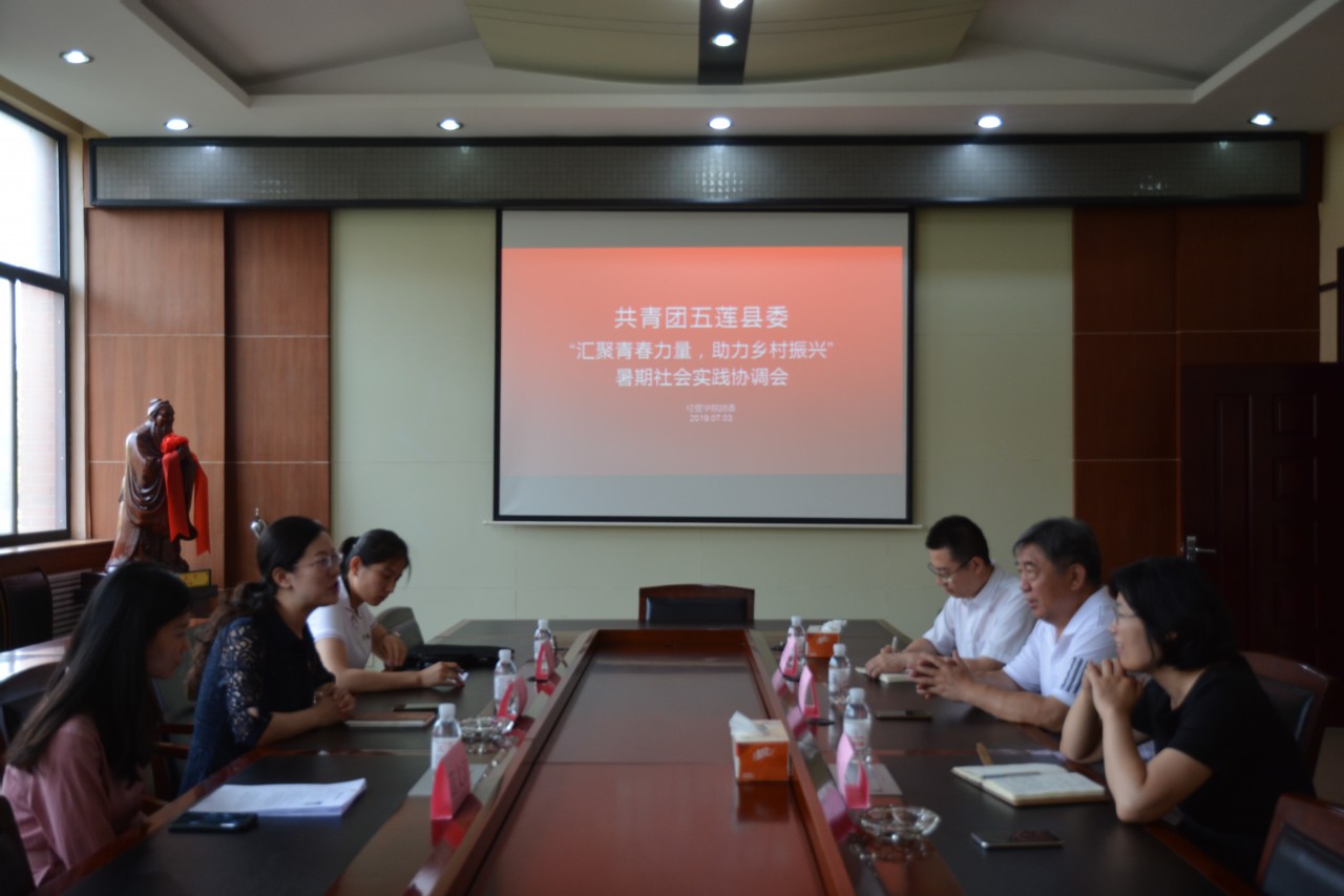 2019年必赢776net同共青团五莲县委合力开展第二届“汇聚青春力量,助力乡村振兴”暑期支教挂职活动,为保证暑期实践活动的顺利进行,7月3日上午在J6-309会议室召开暑期社会实践协调会,共青团五莲县委书记范红、负责人秦谭、学院党委书记杨佑灵、副书记高一丹、团委老师范文洁、曲长胜出席会议。协调会后在J6-217会议室举办了志愿者见面会,部分志愿者参加了本次会议。