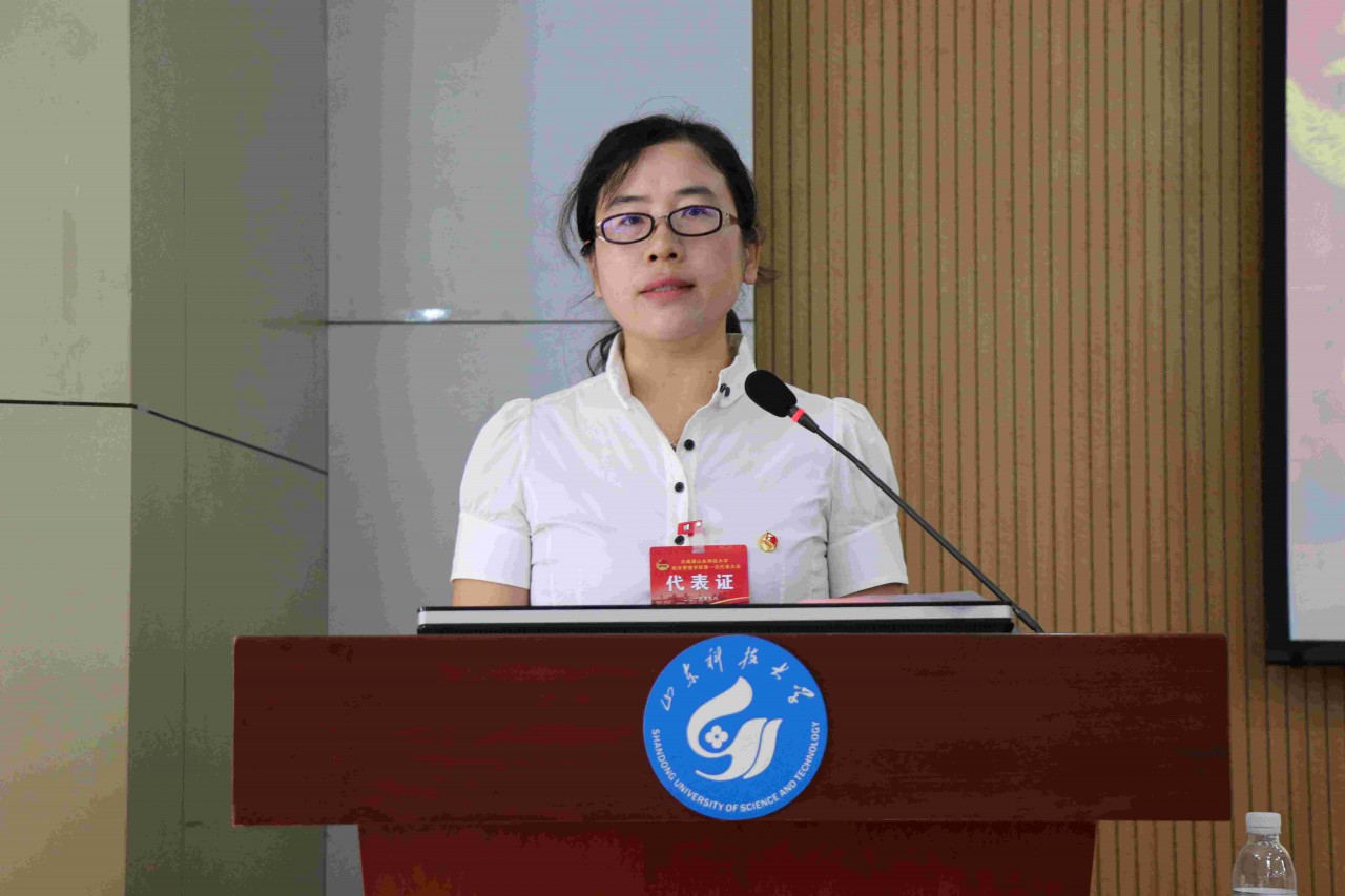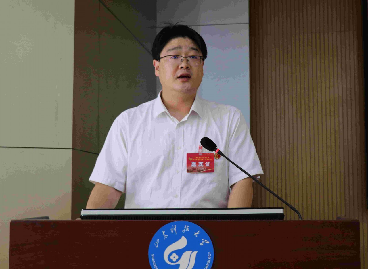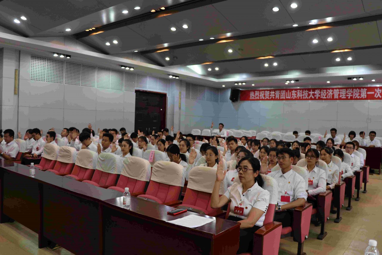 江谭代表共青团山东科技大学必赢776net向大会作《不忘初心跟党走 青春建功新时代——为实现学院共青团工作的光荣使命而努力奋斗》工作报告。报告分为三个部分:一是全面回顾和总结必赢776net共青团以往工作;二是研究共青团工作面临的新形势、新任务;三是规划确定今后一段时间必赢776net共青团工作的奋斗目标和基本思路,选举产生第一届委员会。