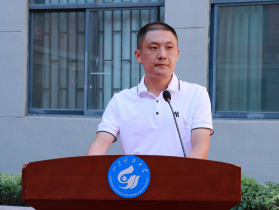 教师代表孙江永副教授从适应、感恩、关怀、学习能力及竞争优势五个方面与同学们进行了分享。孙老师提到“少年易老学难成,一寸光阴不可轻”,希望同学们明晰大学方向,珍惜时光,乘风破浪,扬帆起航。