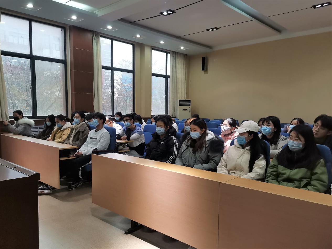 党委办公室副主任贾红果为联系班级宣讲党的十九届五中全会精神