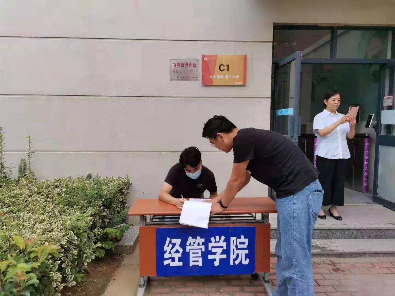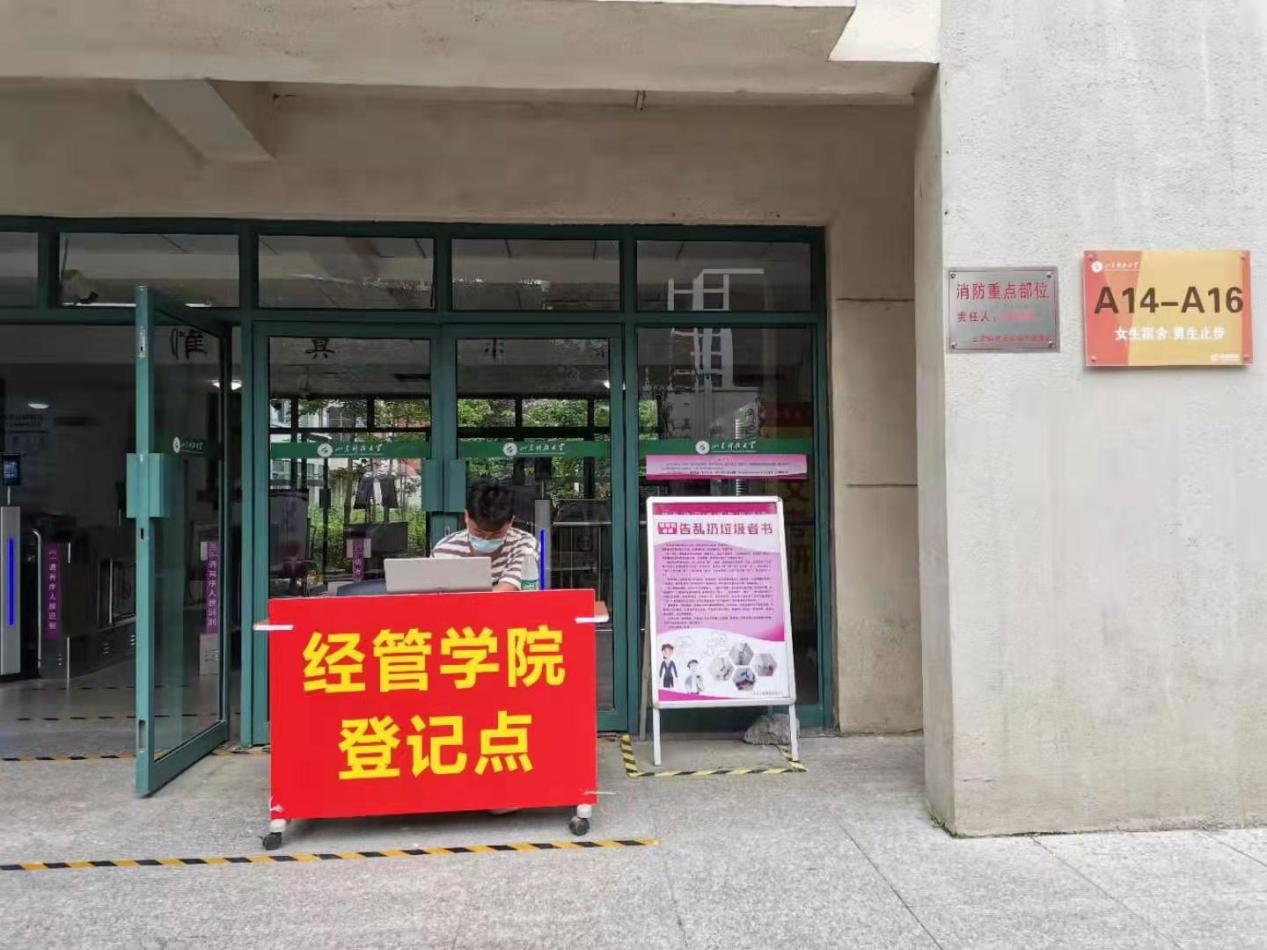 返校前,学院为学生返校做好全力准备,在学院宿舍楼下布置5个返校登记点,掌握学生返校信息,为学生做好物资保障。同时,学院细化返校学生方案,一生一策,根据学生返校时间,精准布置隔离宿舍,准备基本生活物品,保障每个学生在隔离期间的安全,让返校的学生感受到学院的温暖和关爱。此外,学院各年级辅导员精准摸排学生返校时间后,针对每天较晚返校的学生建立微信群,确保其返回学校后可以安心入住隔离宿舍。