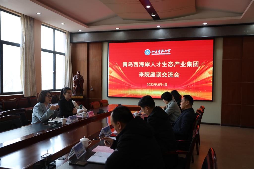 3月1日,青岛西海岸人才生态产业集团总裁助理郭纯姗、人才培训发展顾问张雅莉来院交流。院长侯贵生、副院长马有才、党委副书记兼副院长高一丹、大数据管理与应用系主任王松、团委书记江谭出席会议。