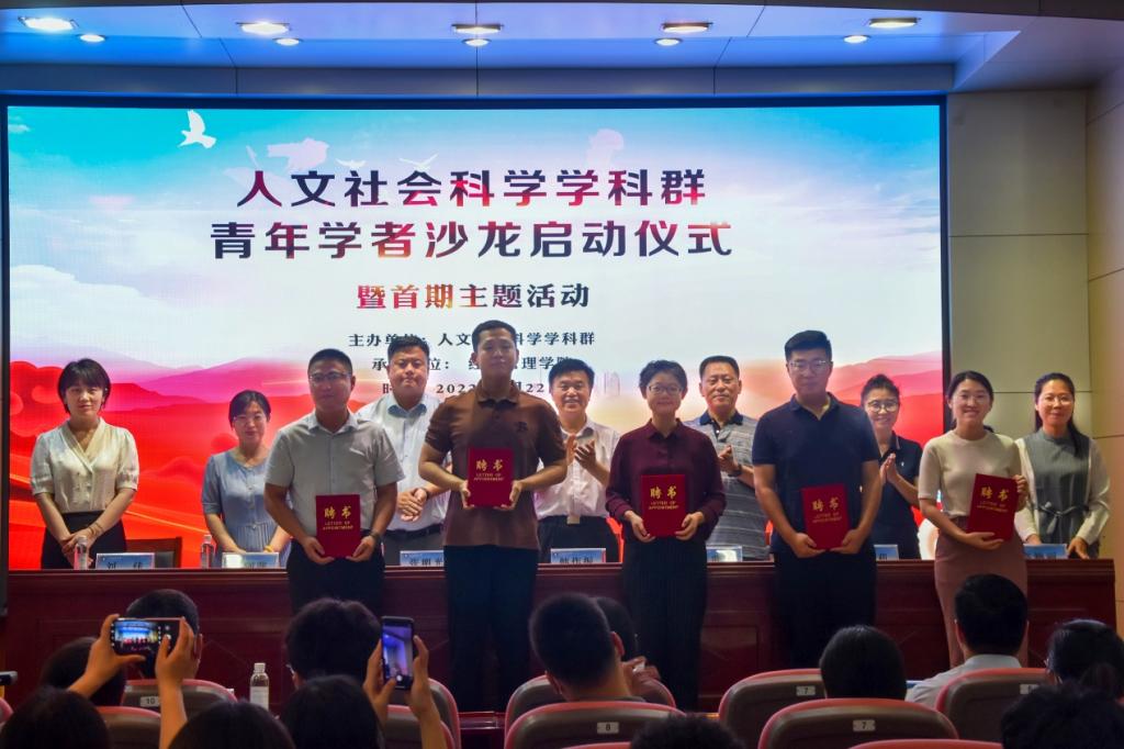 会上举行了人文社会科学学科群青年学者沙龙工作委员会委员聘任仪式。张明光宣读了第一届委员名单,与会领导共同为青年学者沙龙工作委员会委员颁发了聘书。