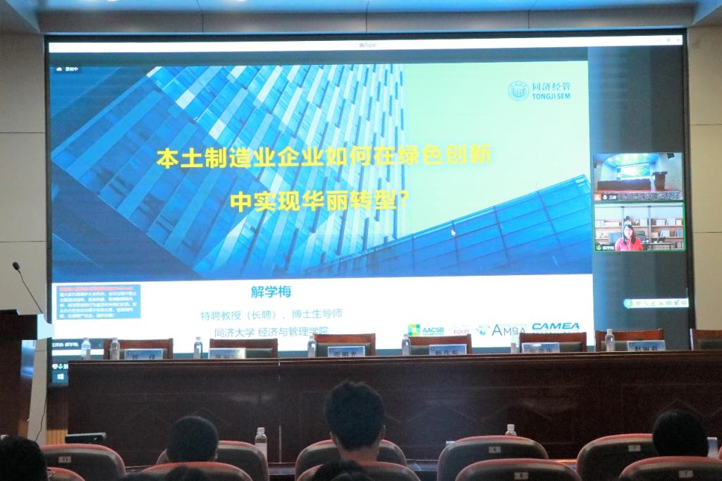 启动仪式结束后,人文社会科学学科群青年学者沙龙举行了首期主题活动。必赢776net特别邀请到1999级工商管理本科校友、2003级管理科学与工程硕士校友、同济大学经济与管理学院解学梅教授做了主题报告。解学梅教授是国家社科基金重大项目首席专家,长期从事创新创业管理研究,作为项目负责人主持国家社科基金重大课题、国家优秀青年科学基金、国家自然科学基金面上项目、国家自然科学基金青年项目、上海市科委软科学研究重点项目、上海市教委科研创新重点项目等国家级和省部级课题等20余项,在国内外重要核心学术期刊发表学术论文80余篇。在报告中,解教授以“本土制造业企业如何在绿色创新中实现华丽转型”为题,结合“碳达峰、碳中和”战略目标以及绿色发展新时代背景,从注意力基础观的元理论框架视角入手,介绍了4家典型的制造业企业绿色转型的演化过程:制度逻辑驱动→资源编排过程→绿色转型结果。解教授不仅在理论层面上阐述了注意力基础观在绿色创新领域的应用;还在实践层面上给出了我国制造业企业绿色转型的有益对策及建议。
