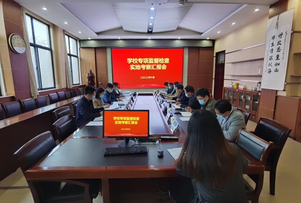 学院党委书记庄兴华紧紧围绕专项督查内容,以校党委巡察整改落实情况为主线,把作风建设、工作作风、党风政风,以及全面从严治党、中央八项规定精神贯彻落实等融合其中进行了详细汇报,并表示学院党委将继续抓好整改,统筹推进党建工作与业务工作深度融合,进一步提高学院整体实力与办学水平。院长侯贵生汇报了学院2022年重点任务指标完成情况,并对下一步重点任务指标工作计划进行了介绍。期间,工作人员对学院办公用房、年度重点任务完成情况、落实中央八项规定情况等进行了调度,查阅相关材料,并反馈了指导意见建议。