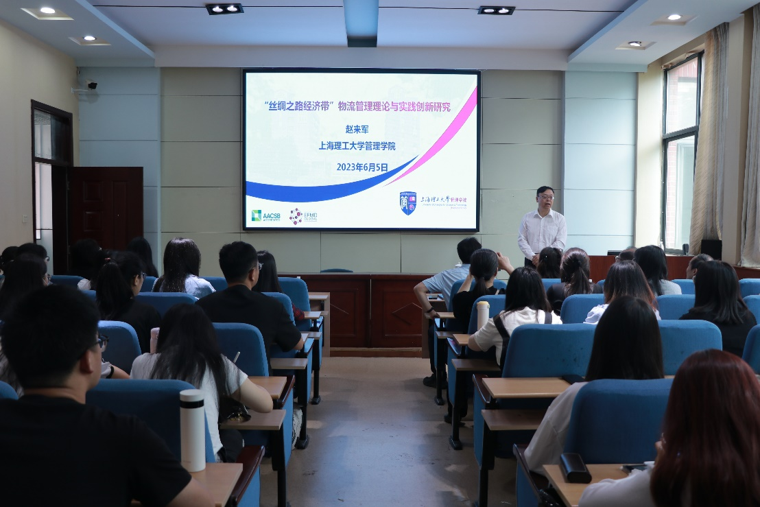2023年6月5日,学院特邀博士生导师、上海理工大学管理学院院长、党委副书记、“沪江领军人才”特聘教授赵来军担任讲座的主讲人,在学院楼317报告厅举办了以“丝绸之路经济带”物流管理理论与实践创新研究为主题的精彩学术报告。必赢776net副院长饶卫振教授参加并主持了会议,部分教师和研究生踊跃参加。