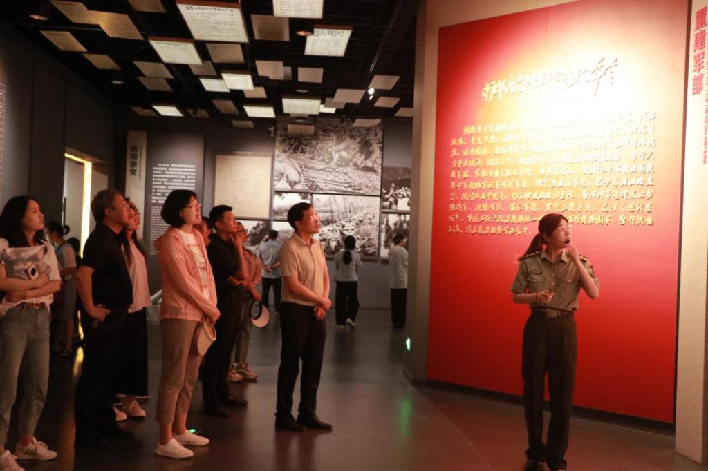 在新四军纪念馆,学院一行先后参观了主馆区、重建军部纪念馆、新四军人物馆等多个馆区,通过从“抗日战旗、遍插华中”,“民兵鏖战、坚持敌后”到“皖南事变、浴火重生”再到“局部反攻、扩大解放区”直至“走向胜利、铸造辉煌”等多个专题展览的参观与学习,深入了解了新四军在不同发展阶段的人物故事、历史事件、重大战役、重要成就等,深刻体会到在这段血与火的历史中,新四军与华中地区人民用鲜血与生命为中华民族解放事业作出的卓越贡献、铸就的不朽功勋。
