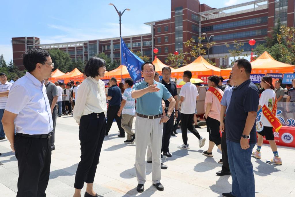 2号上午,校党委书记罗公利、校长曾庆田在相关部门负责人的陪同下来到我院新生报到现场,视察我院迎新工作,与院领导及工作人员进行交流,询问各项工作进程,并在许愿卡片上写下了对新生的祝福。