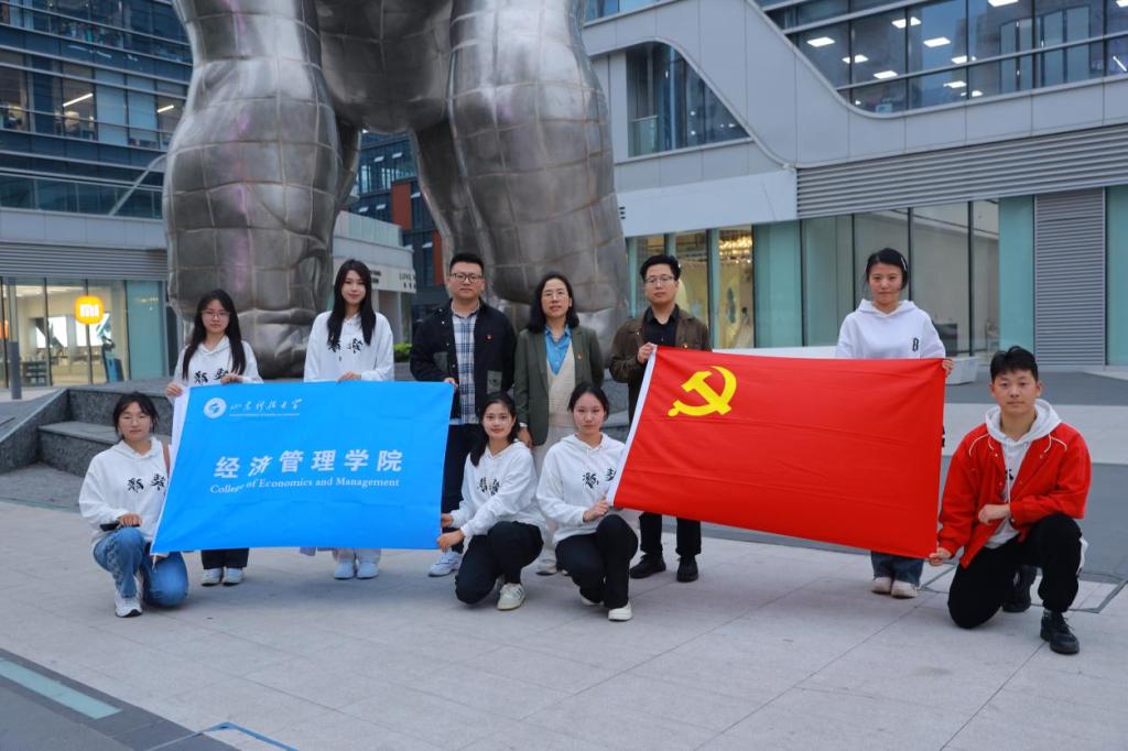为加快学院乡村振兴党支部电商直播团队建设,帮助学生快速了解直播电商及跨境直播的发展,提升对电商直播行业的认识和了解,10月19日必赢776net服务乡村振兴党支部、青葵志愿服务队前往青岛薪淙科技有限公司参观研学,学院团委书记江谭,辅导员王鹏民、孙远辰、薛传旭带队参加。