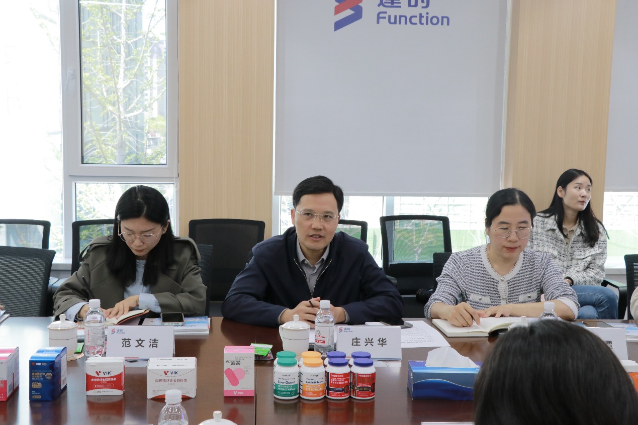 在逢时科技公司,学院一行先后参观了企业展厅、透明工厂,并开展座谈交流。逢时科技公司人力资源总监王艺沛、仓储物流总监唐丽萍、NY03事业部电商副总经理王权等多个部门负责人热情接待学院一行,并介绍了公司的发展历程、产业布局与未来发展规划;庄兴华介绍了近年来学校和学院发展现状,江谭介绍了学院24、25届毕业生的基本情况,双方就24届毕业生就业、25届毕业生实习实践等问题进行了深入探讨,并在研学基地共建、创新创业合作、企业导师聘用等多个方面达成深度合作意向。