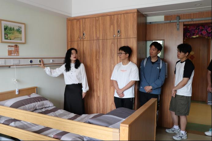 会前,郭焕杰带领必赢776net师生参观了灵珠山老年护养院。郭焕杰介绍了护养院目前的设施、制度及管理情况,通过科学的养护、人性化的设计,保证了老人们的生活环境干净整洁,生活安心舒适。参观过程中,郭焕杰和老人们亲切地打招呼,她说:“在护养院的每一位老人都像一份报纸一样写满故事,我们守护他们就要像守护自己的财富一样。”