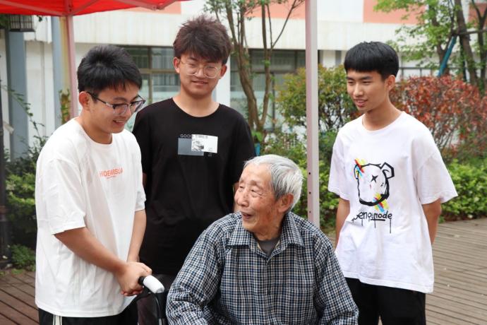 仪式结束后,学院志愿者们在护养院分组开展志愿服务活动,有的与老人们聊天,倾听他们的心声;有的为老人们唱歌、讲笑话,让老人们感受到欢乐与温暖。志愿者们的到来,让护养院变得热闹起来,老人们的脸上都洋溢着幸福开心的笑容。