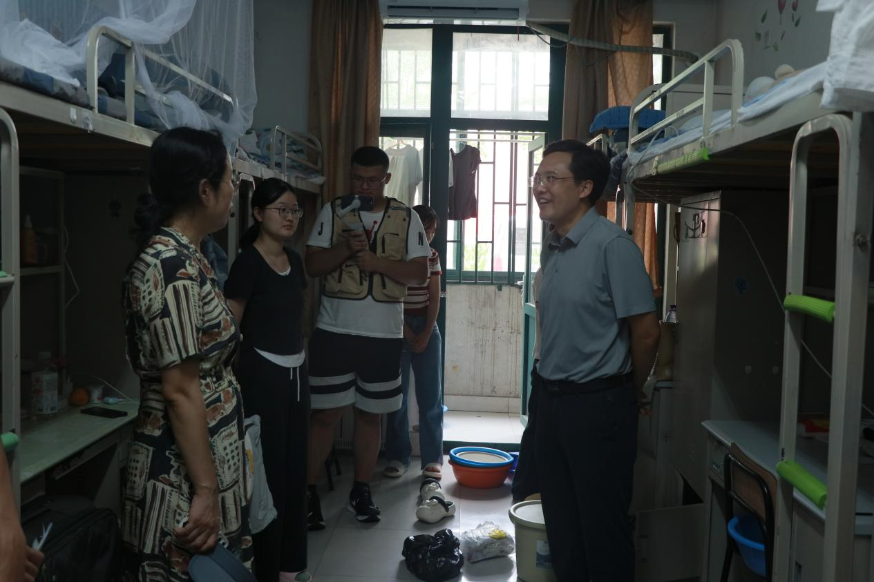 31日中午,学院党委书记庄兴华,党委副书记、副院长江谭、团委书记曲长胜和24级辅导员来到2024级本科新生宿舍楼,深入学生宿舍走访看望新生,向新生表达了学院的热烈欢迎,并关心、关怀新生对宿舍、校园环境的适应情况,鼓励同学们主动融入宿舍、班级集体,营造良好的人际关系,嘱咐同学们注意人身财产安全。