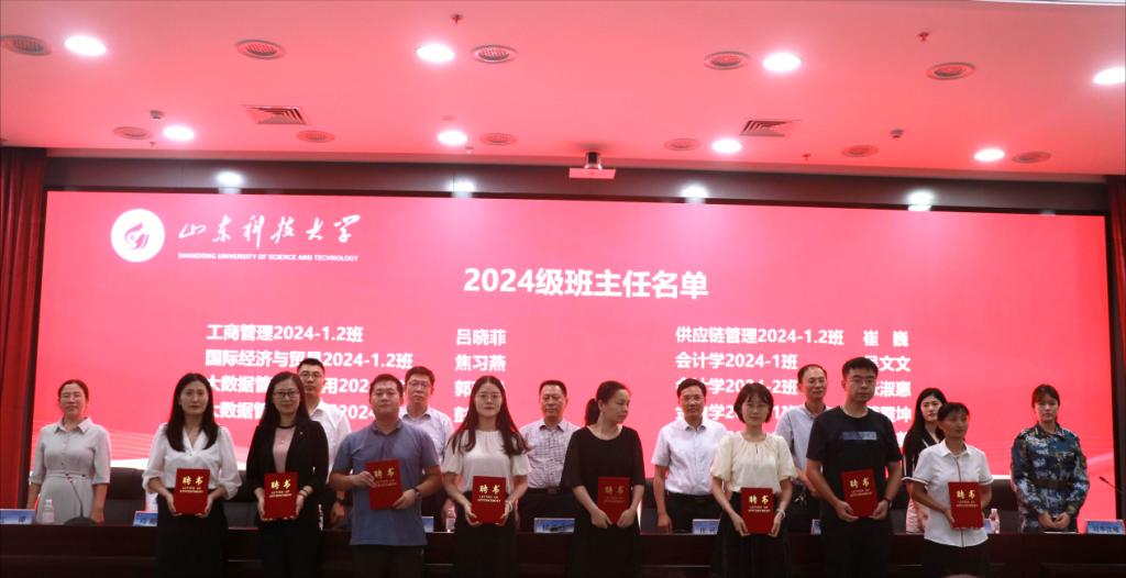 大会还举行了班主任聘书颁发仪式。学院主席台领导共同为2024级班主任颁发了聘书。