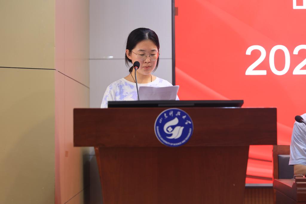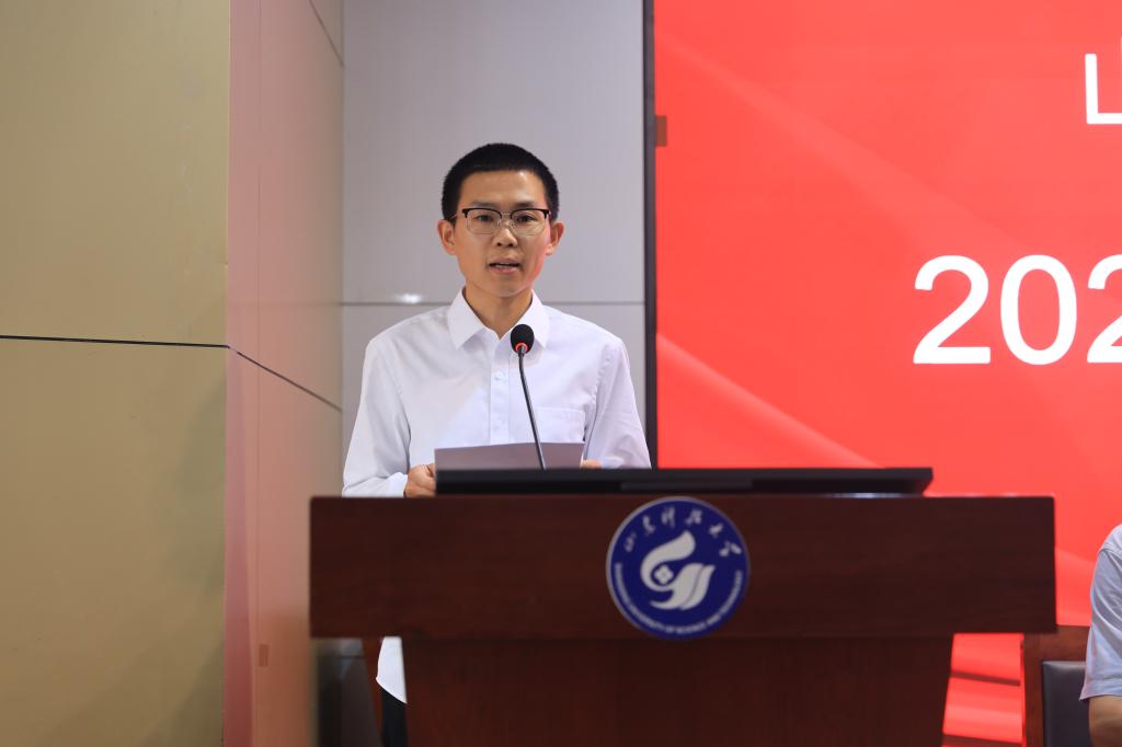 老生代表、2022级博士研究生朱广明向新生们传授了宝贵的学习和生活经验。他分享了自己在研究生阶段遇到的挑战与收获,鼓励新生们要保持良好的心态,积极与导师交流沟通,积极面对困难,珍惜与同学之间的友谊,共同营造一个和谐、积极向上的学习氛围。