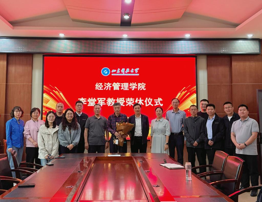 李堂军教授回顾了任教期间与同事、学生美好的相处时光,分享交流了为学为师的感悟体会,深切表达了对学院领导、同事的感激之情和对学院的诚挚祝愿。随后,学院为李教授献上鲜花和荣休纪念品,并送上真挚祝福。
