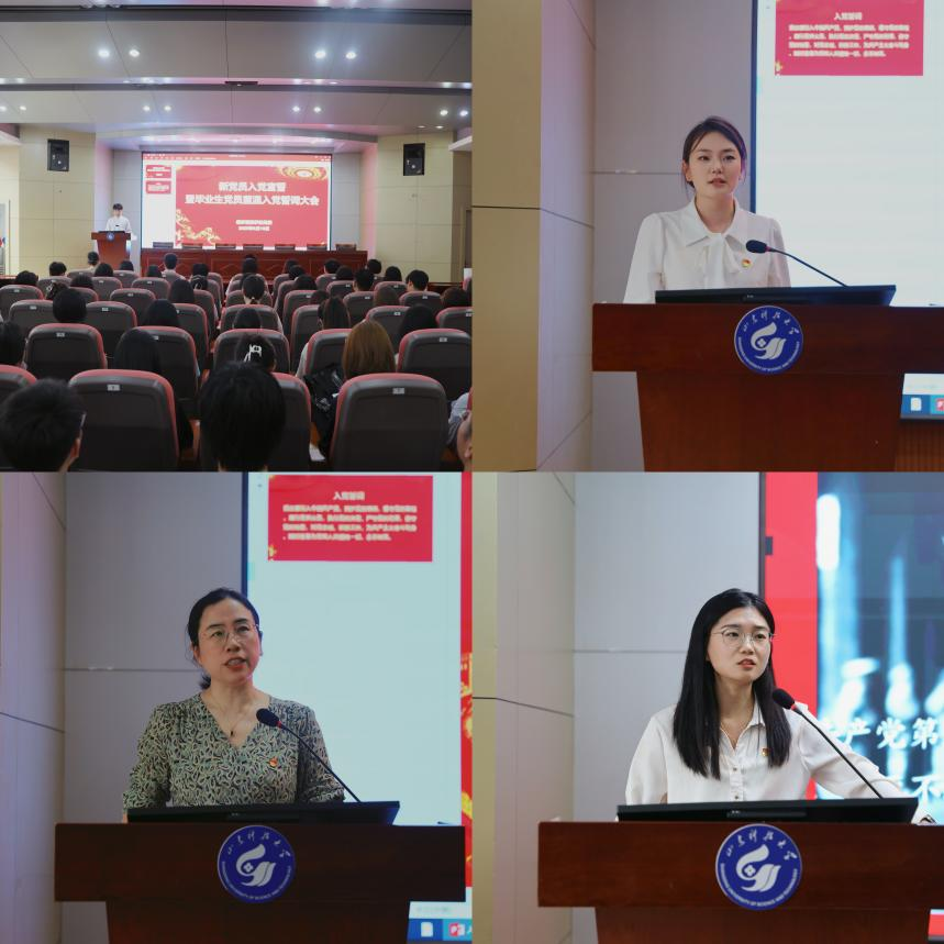 毕业生党员代表袁亚群回顾了大学四年成长历程,感谢党组织培养与学校学院栽培,表示要不忘初心,牢记使命;要勇于担当,敢于作为;要终身学习,与时俱进。江谭对全体党员提出三点要求:一是要勤于学习,将理论学习作为终身课题;二是要善于思考,带着问题学、联系实际思,不断深化对党的宗旨使命的认识;三是要勇于实践,坚持学用结合、以学促干,把学习成效转化为建功新时代的实际行动,自觉争做时代先锋,用实际行动践行党的初心和使命。毕业生辅导员范文洁以“永葆党员本色,砥砺奋进新征程”为主题为全体毕业生党员讲授最后一堂党课。课堂上通过播放优秀党员事迹视频,引导党员们深刻感悟共产党人的初心使命和担当精神。同时,对毕业生党员提出三点希望:一是坚守初心,牢记党员身份,始终保持政治定力和理想信念;二是勇担使命,在科技创新、乡村振兴等国家战略中主动作为;三是永葆本色,始终以更高标准、更严要求锤炼党性。
