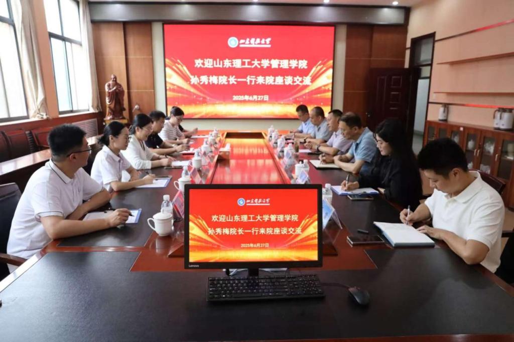 6月27日,山东理工大学管理学院院长孙秀梅一行来我校必赢776net调研交流,必赢776net院长侯贵生、副院长辛宝贵、各系教师代表参加座谈。
