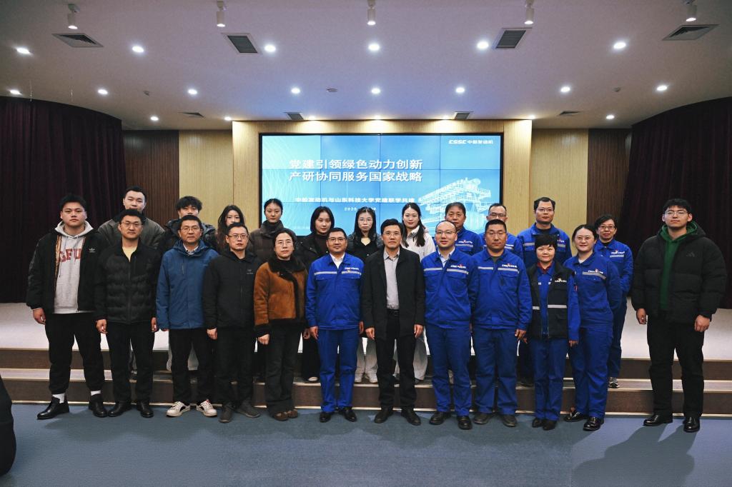 参观结束后,中船发动机有限公司营销质量党支部书记张军伟以“党建引领绿色动力创新,产研协同服务国家战略”为题作专题报告。报告重点解读了公司“五四三一”党建工作体系的核心内涵——即五个融合促发展、四个作用聚合力、三个保障强根基、一个目标领方向,系统介绍了营销质量党支部在强化党建引领、凝聚支部合力、推动党建与业务深度融合等方面的实践经验,分享了企业在绿色动力技术研发、产业链协同创新等领域的丰硕成果,彰显了党建工作对企业高质量发展的引领保障作用。