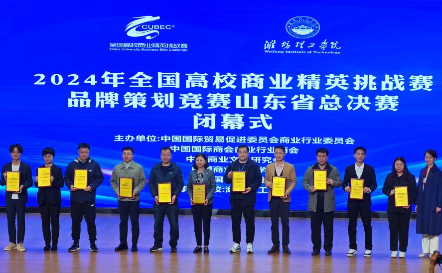 近日,2024年全国高校商业精英挑战赛品牌策划竞赛暨(新加坡)全球品牌策划大赛中国地区选拔赛山东省总决赛在潍坊结束。我院选派的14支队伍参赛中,有5支队伍获得一等奖、6支队伍获得二等奖、3支队伍获得三等奖,我校青岛校区荣获最佳院校组织奖。