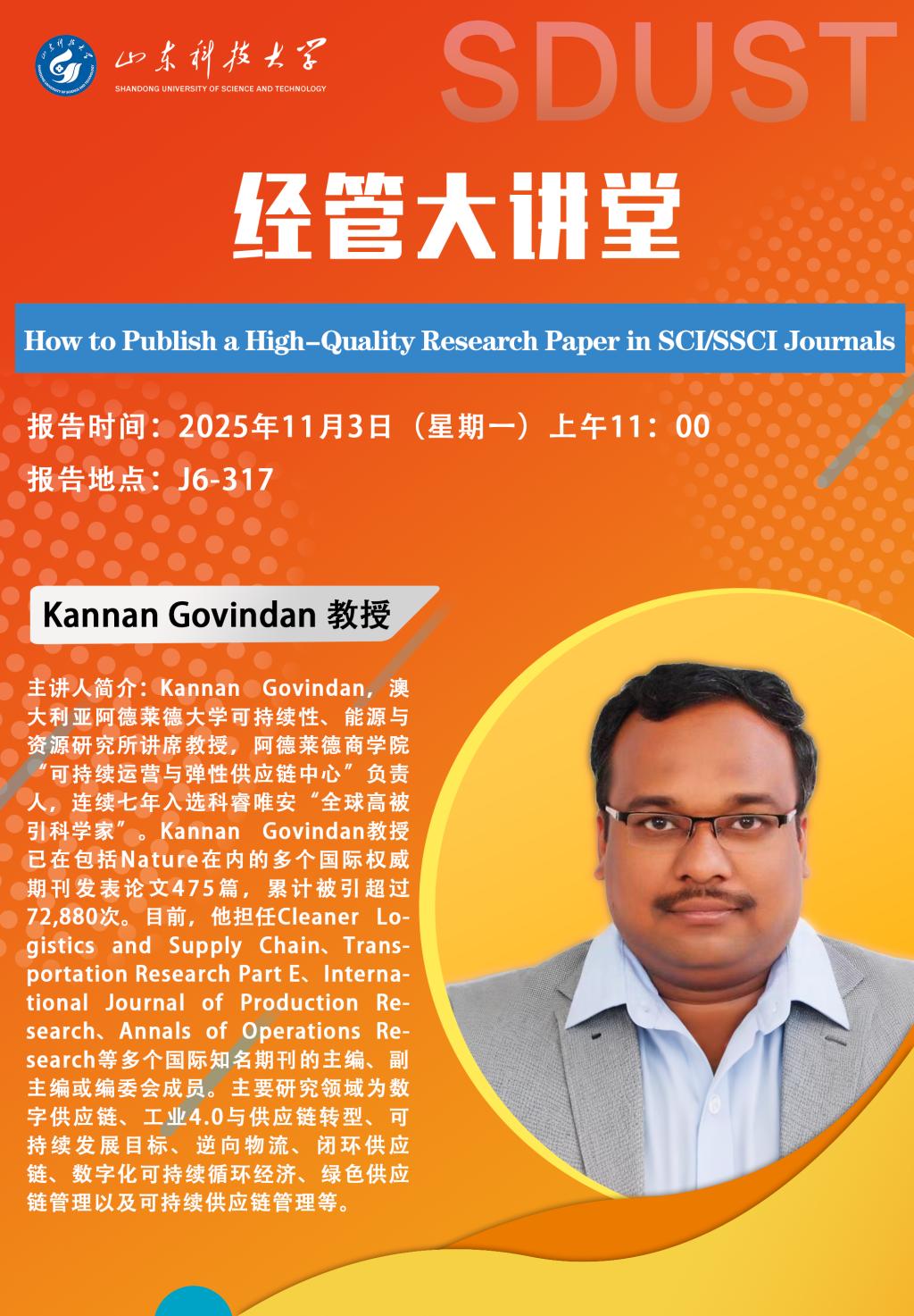 【经管大讲堂】:How to Publish a High-Quality Research Paper in SCI/SSCI Journals