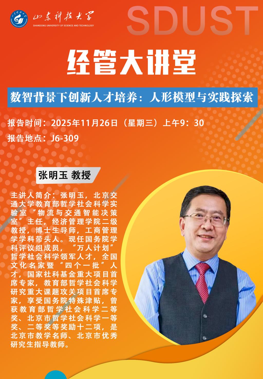 【经管大讲堂】:数智背景下创新人才培养:人形模型与实践探索