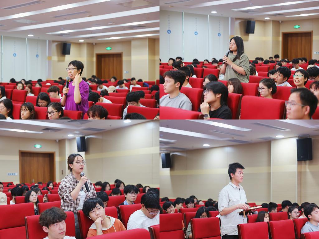 互动交流环节,黎云龙教授结合AI时代的学习挑战,对比了“AI代劳”与“自主思考”的差异,强调大学的意义不仅在于获取学历,更在于培养“惟真”与“求新”的探究能力。芮元青以“一个电话改变人生轨迹”的亲身经历,鼓励学子打破地域限制,主动求知,向外探索,“走出去”接触更广阔平台。现场同学围绕职业发展路径、升学申请流程、跨学科学习挑战等话题展开深入探讨,两位主讲嘉宾耐心解答与指导。