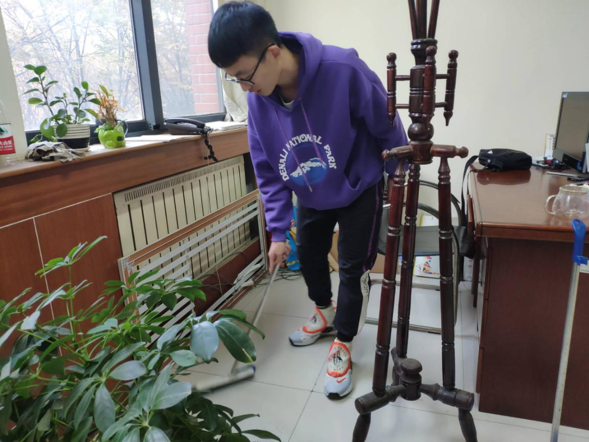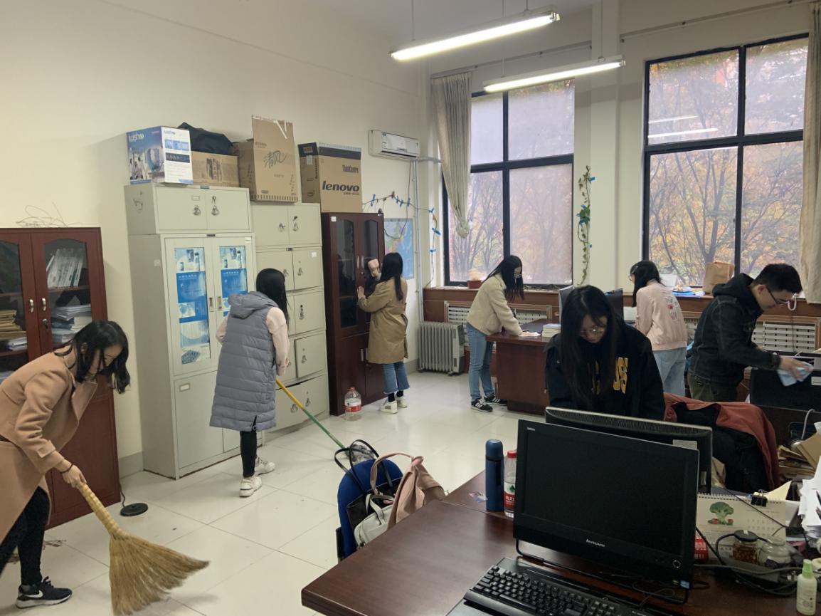 亲手献爱,秋日传情。学生党员走进各系老师的办公室,分工明确,工作高效,细心整理书籍资料、擦拭桌面地板,并对每间办公室的卫生死角认真清扫,认真规整学院仓库、搬放电脑、书桌等。经过近两个小时的辛勤劳动,为老师们营造出了一个舒适、宜人的工作环境。