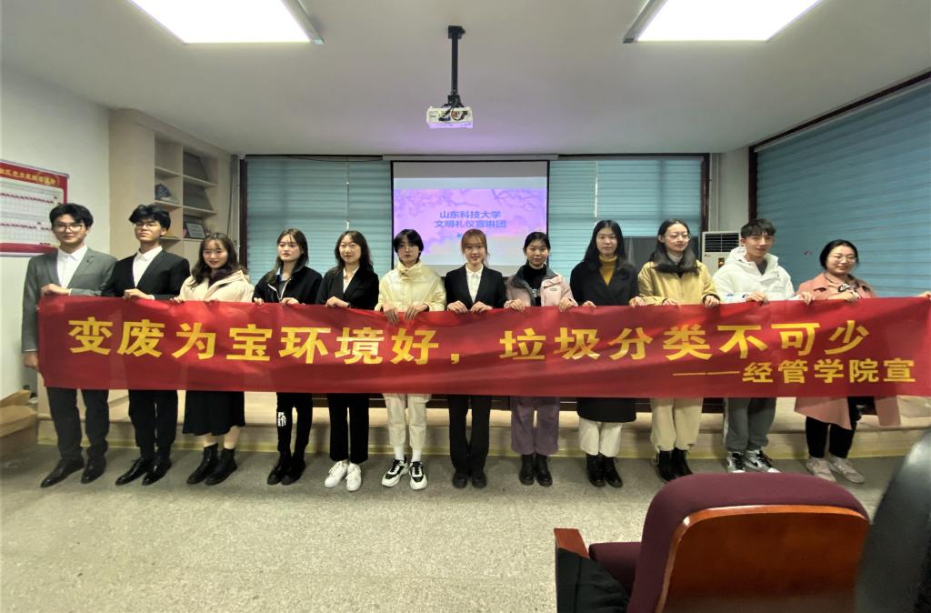 山东科技大学学生文明礼仪宣讲团走进社区开展垃圾分类宣讲活动