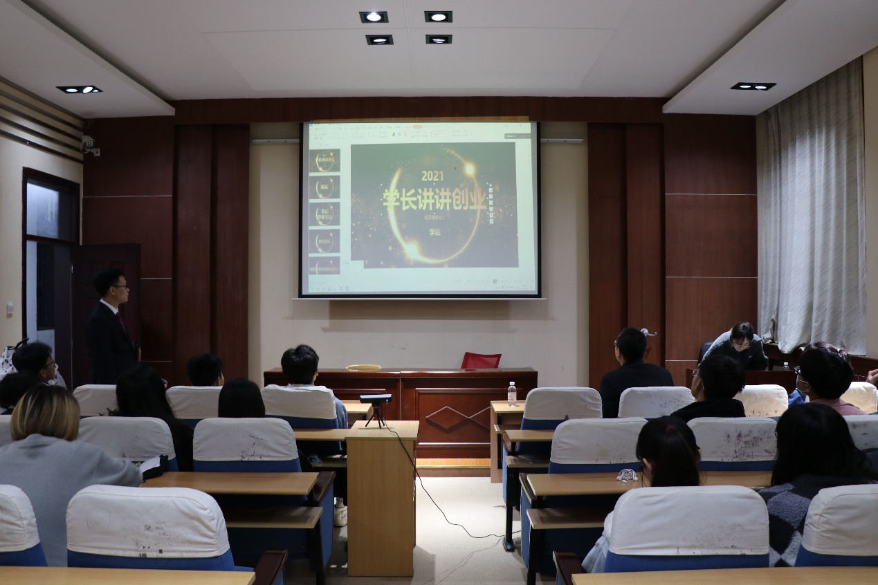 为提高大学生创新创业意识,4月22日,必赢776net于学院楼二楼会议室举办创新创业大讲堂。本次活动邀请了必赢776net工商管理专业2016级优秀毕业生李斌担任主讲人,学院团委老师曲长胜和部分同学参加了此次讲座。